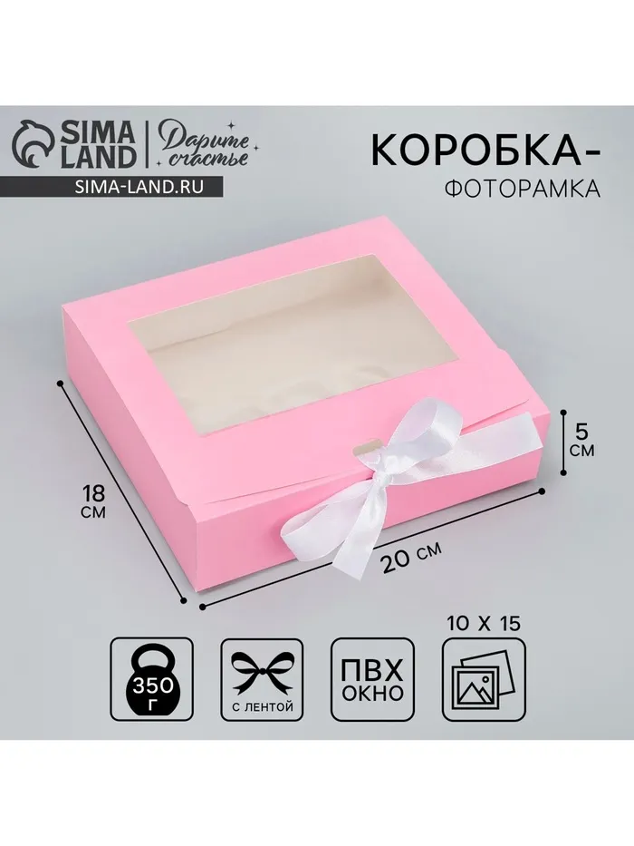 Коробка-фоторамка подарочная складная, упаковка, «Розовая вата», 20 х 18 х 5 см — Характеристики