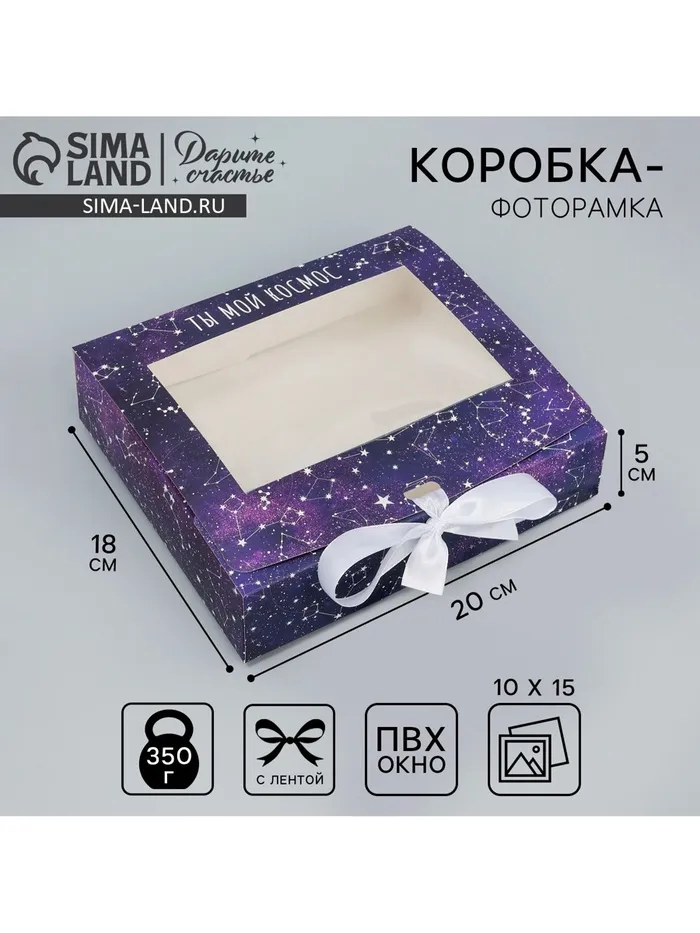 Коробка-фоторамка подарочная складная, упаковка, «Ты мой космос», 20 х 18 х 5 см — Характеристики