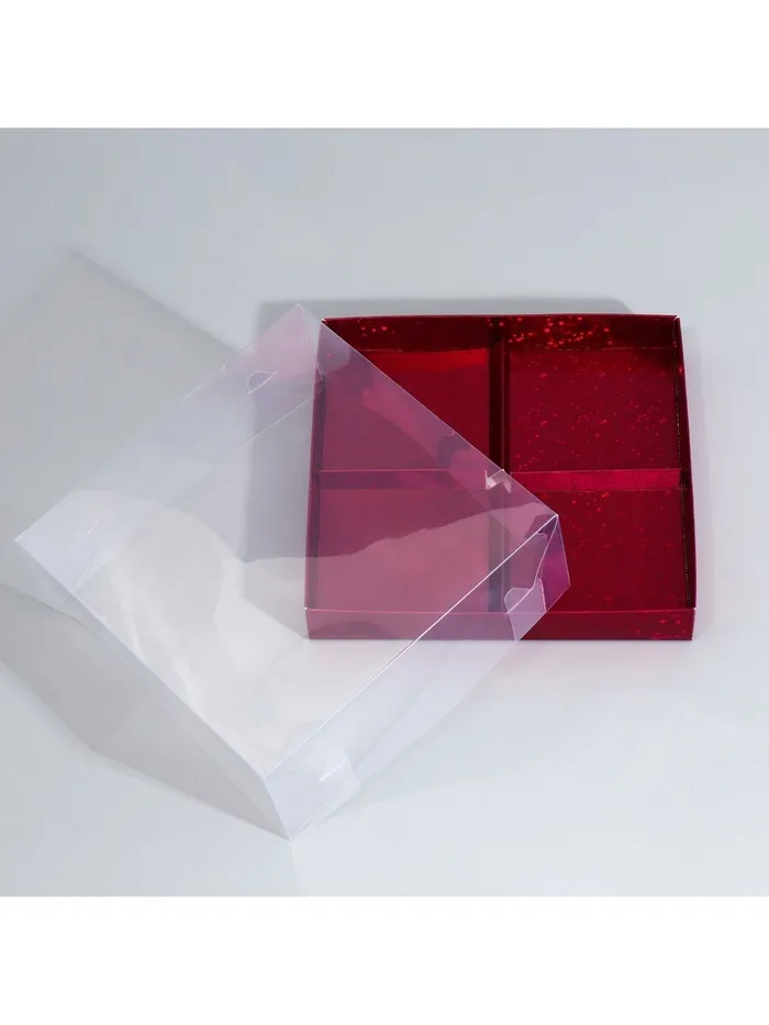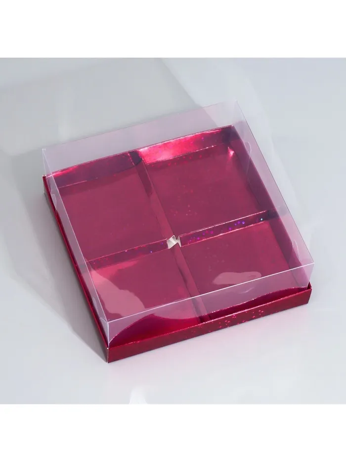 Коробка кондитерская для муссовых пирожных «Бордовые звёздочки», 17.8 х 17.8 х 6.5 см — Характеристики