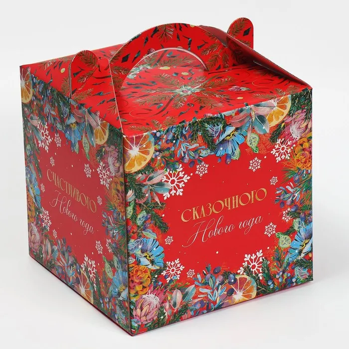 Коробка кондитерская с окном, сундук, «Новогодняя ботаника» 20 х 20 х 20 см — Характеристики