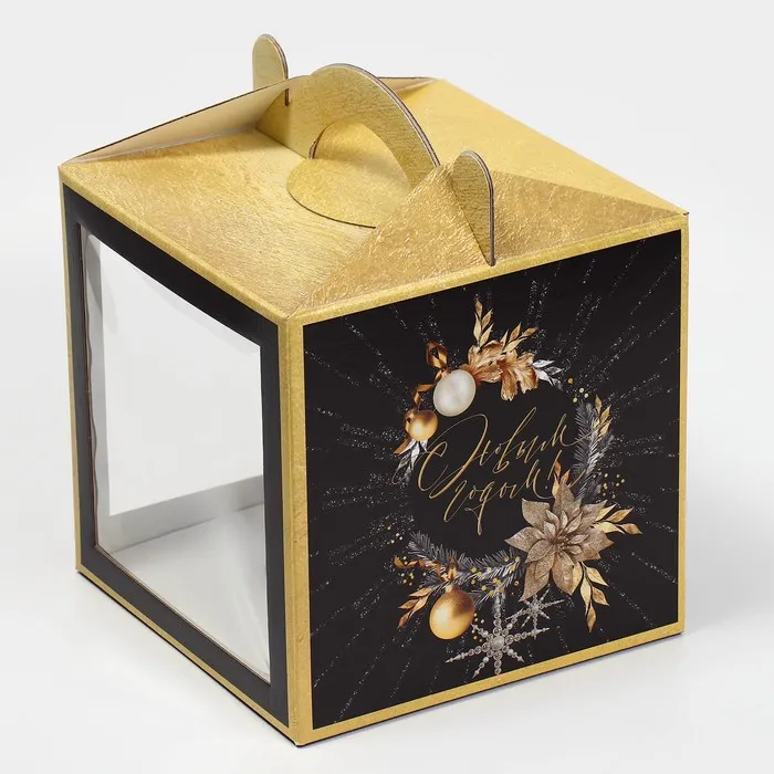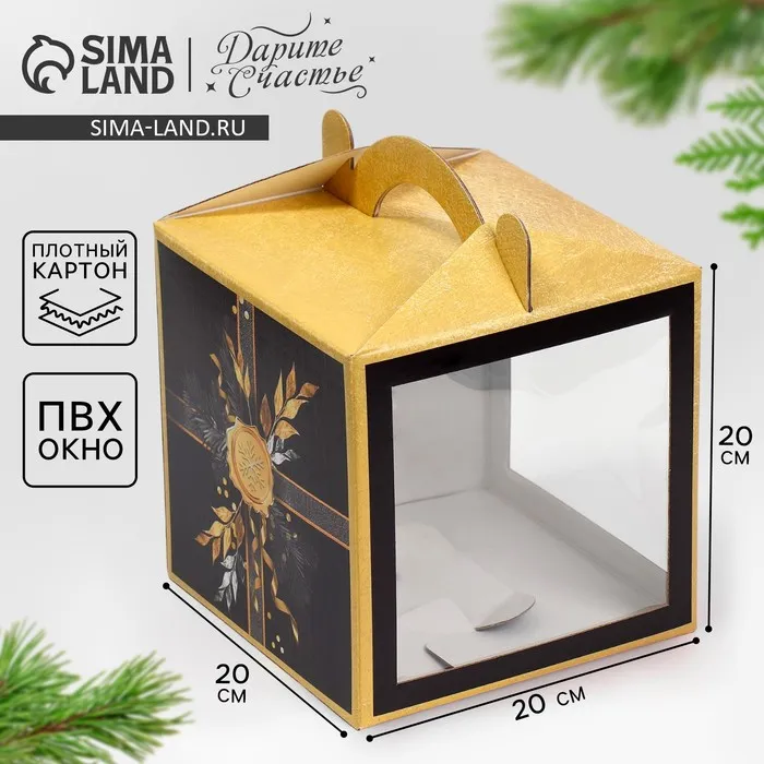 Коробка кондитерская с окном, сундук, «Новогодний шик» 20 х 20 х 20 см — Характеристики