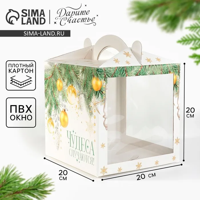 Коробка кондитерская с окном, сундук, «Уютный новый год» 20 х 20 х 20 см — Характеристики