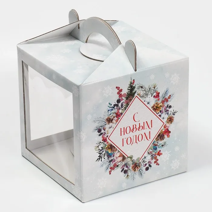 Коробка кондитерская с окном, сундук, «Зимняя акварель» 20 х 20 х 20 см — Характеристики