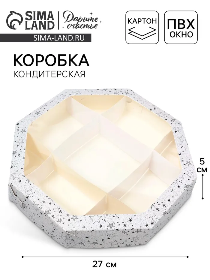 Коробка кондитерская складная, упаковка «Звезда», 27 х 27 х 5 см — Характеристики