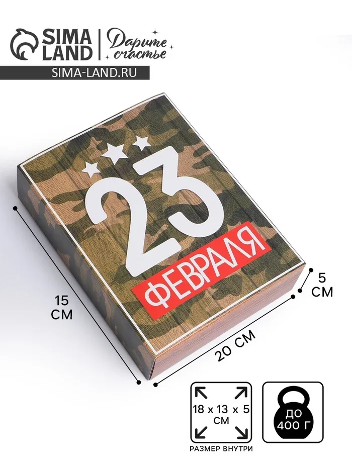 Коробка кондитерская, упаковка, «23 февраля», 20 х 15 х 5 см — Характеристики