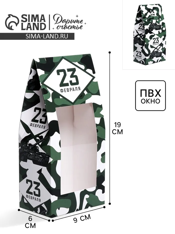 Коробка кондитерская, упаковка, «23 февраля», 9 х 19 х 6 см — Характеристики