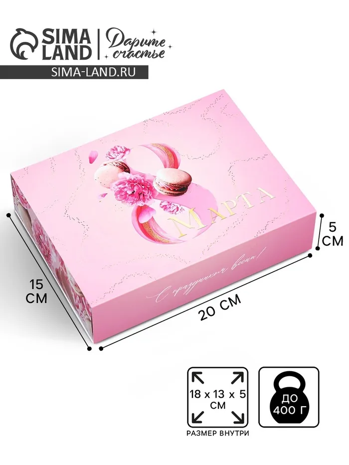 Коробка кондитерская, упаковка «8 марта», 20×15×5 см — Характеристики