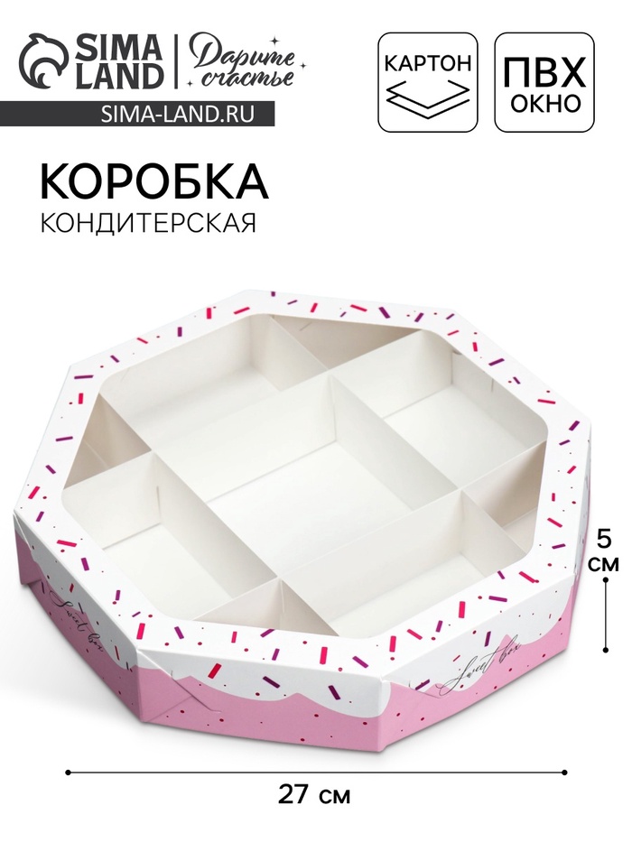 Коробка кондитерская, упаковка, Sweet box, 27 х 27 х 5 см — Характеристики
