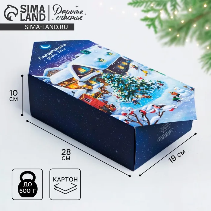 Коробка - конфета подарочная новогодняя складная «Новогодняя деревушка», 18 х 28 х 10 см, Новый год — Характеристики