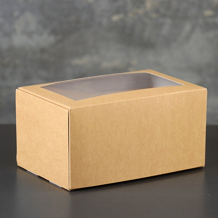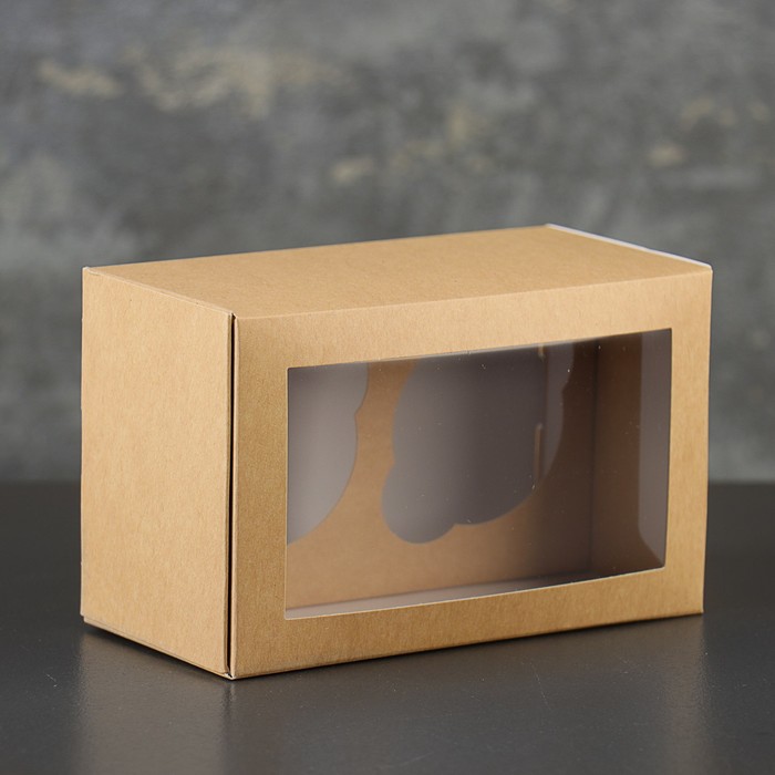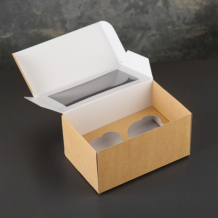 Коробка-моноблок картонная под 2 капкейка, с окном, крафт, 16 х 10 х 8 см — Характеристики