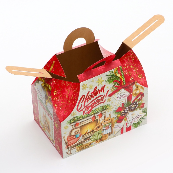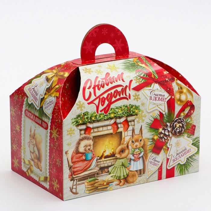 Коробка выполнена из качественных материалов, которые обеспечивают сохранность содержимого. Она имеет яркий и красочный дизайн, который отражает атмосферу Нового года.