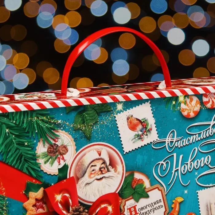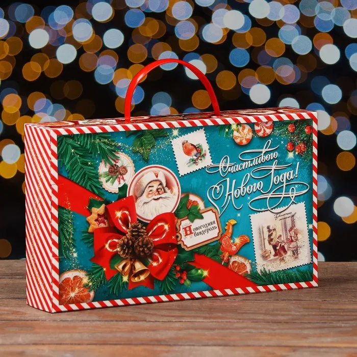 Коробка выполнена из качественных материалов, которые обеспечивают сохранность содержимого. Она имеет яркий и красочный дизайн, который отражает атмосферу Нового года.