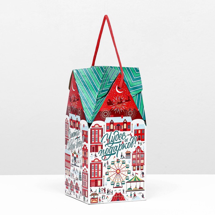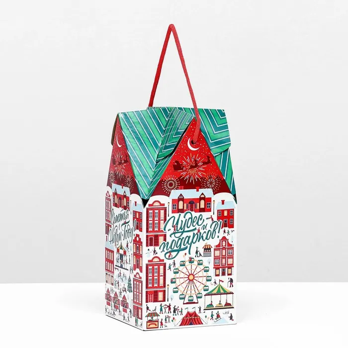 Коробка новогодняя подарочная складная «Лунапарк» 10.5×10.5×21.5 см