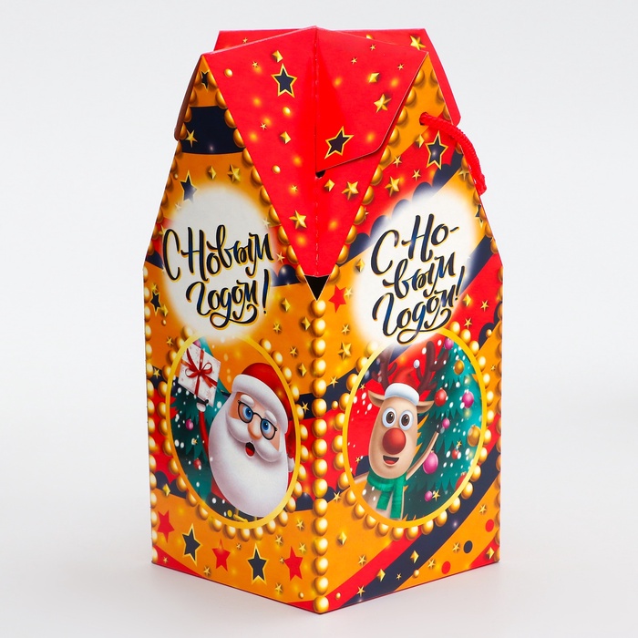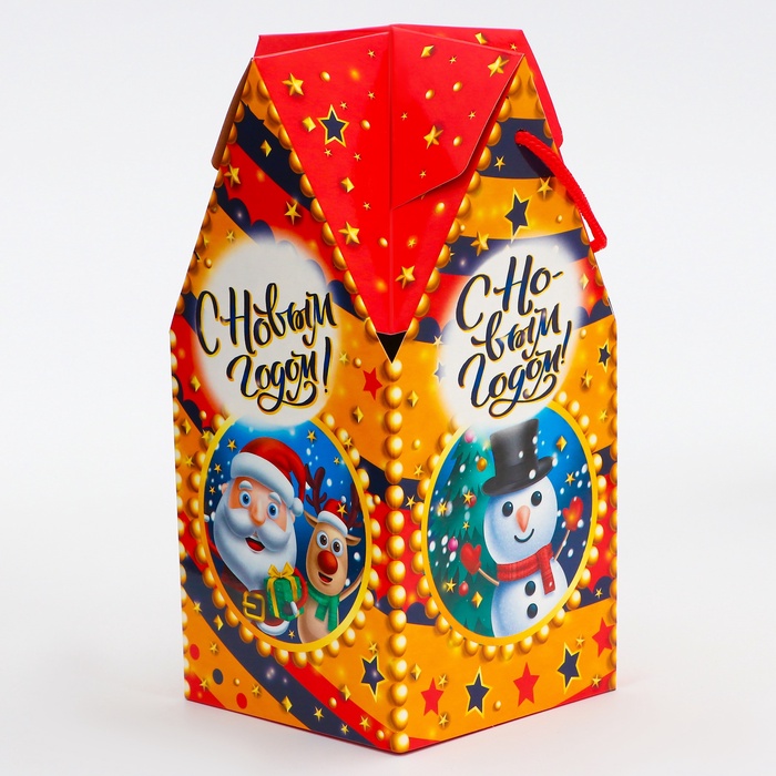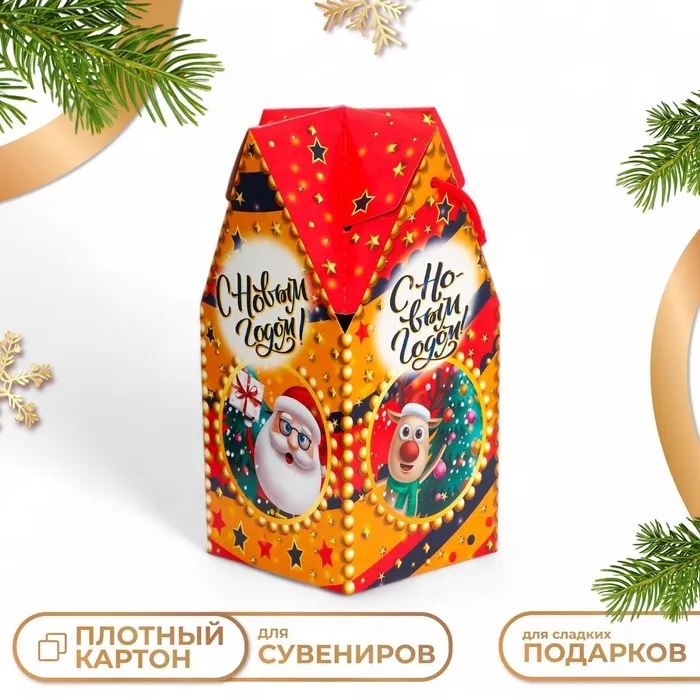 Коробка выполнена из качественных материалов, которые обеспечивают сохранность содержимого. Она имеет яркий и красочный дизайн, который отражает атмосферу Нового года.