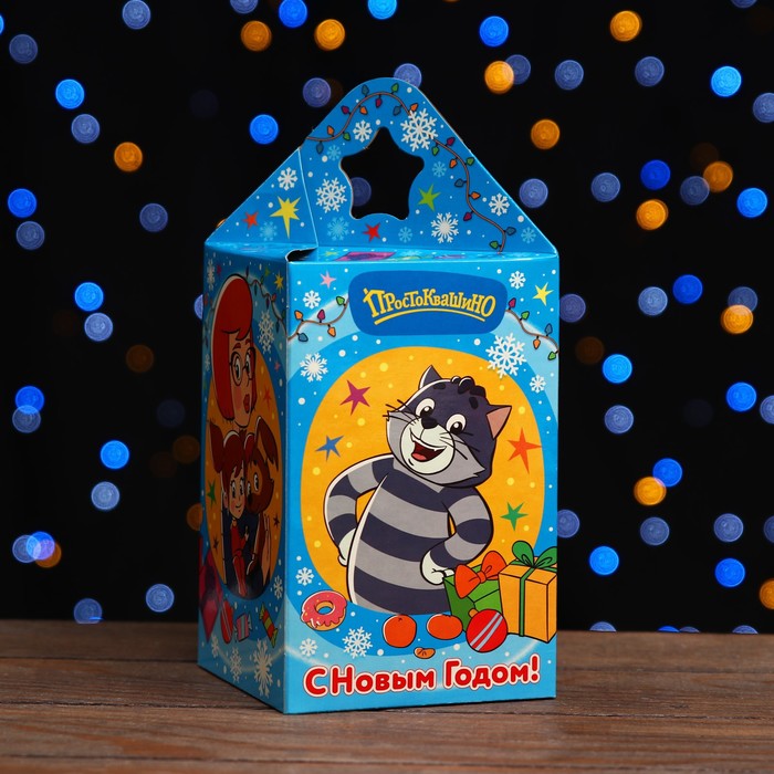 Коробка новогодняя подарочная складная «Простоквашино» 11×11×17.2 см