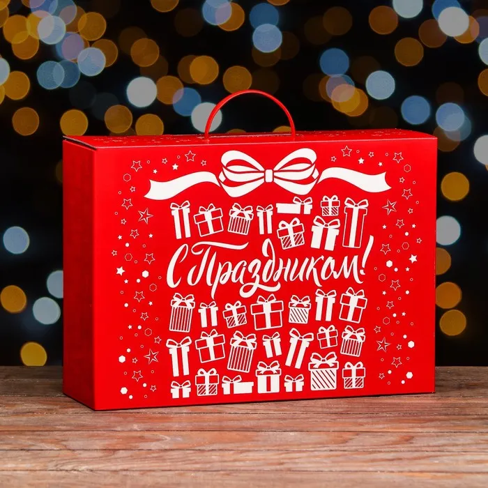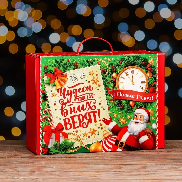Коробка выполнена из качественных материалов, которые обеспечивают сохранность содержимого. Она имеет яркий и красочный дизайн, который отражает атмосферу Нового года.