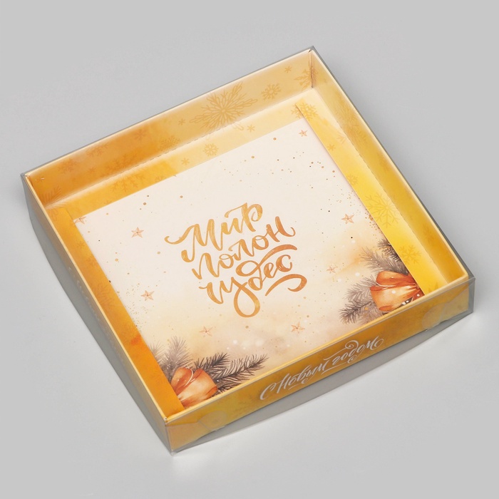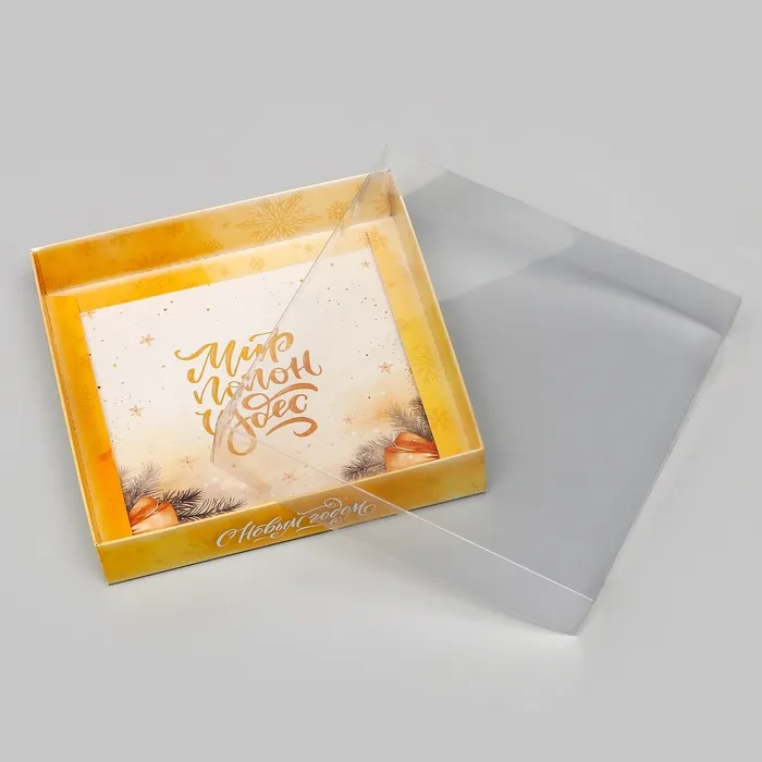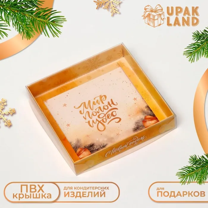 Новогодняя кондитерская упаковка с PVC крышкой размером 16 х 16 х 3 см – это идеальный выбор для праздничной подачи и хранения ваших сладких угощений.