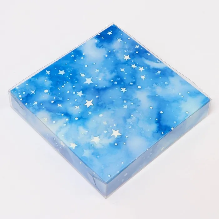 Крышка из прозрачного PVC материала надежно защищает содержимое, позволяя легко демонстрировать вкусные десерты, такие как пирожные, печенье или конфеты, не открывая коробку.