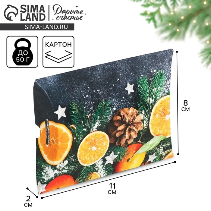 Коробка новогодняя складная фигурная «Мандариновое настроение», 11 х 8 х 2 см, Новый год — Характеристики