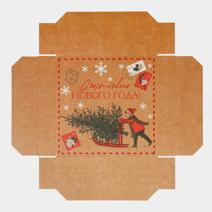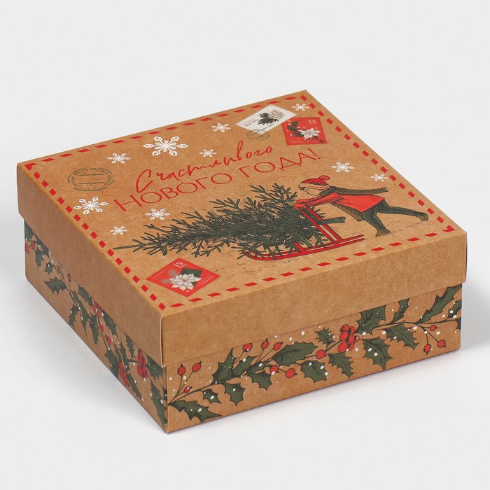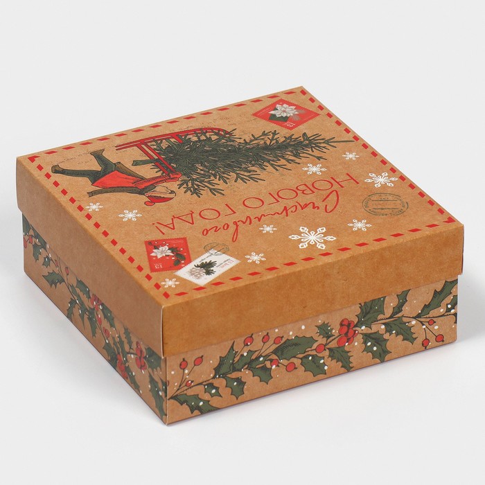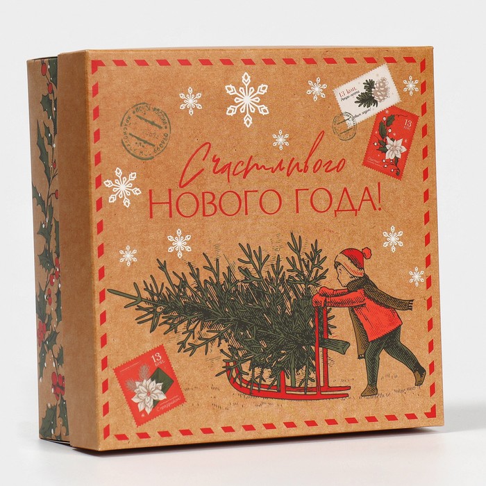 Коробка новогодняя складная «Новогодняя почта», 17 х 17 х 7 см, Новый год — Характеристики