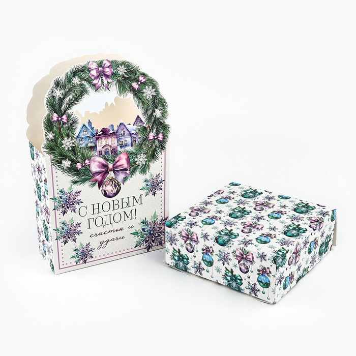 Коробка новогодняя складная «Новогодний венок» 18.4 х 30.4 х 7.3 см — Характеристики
