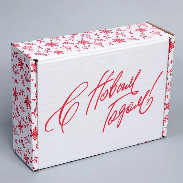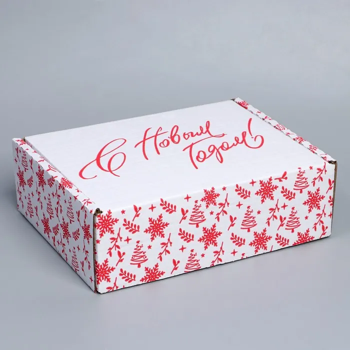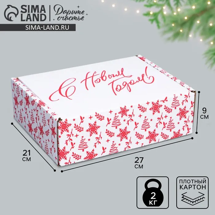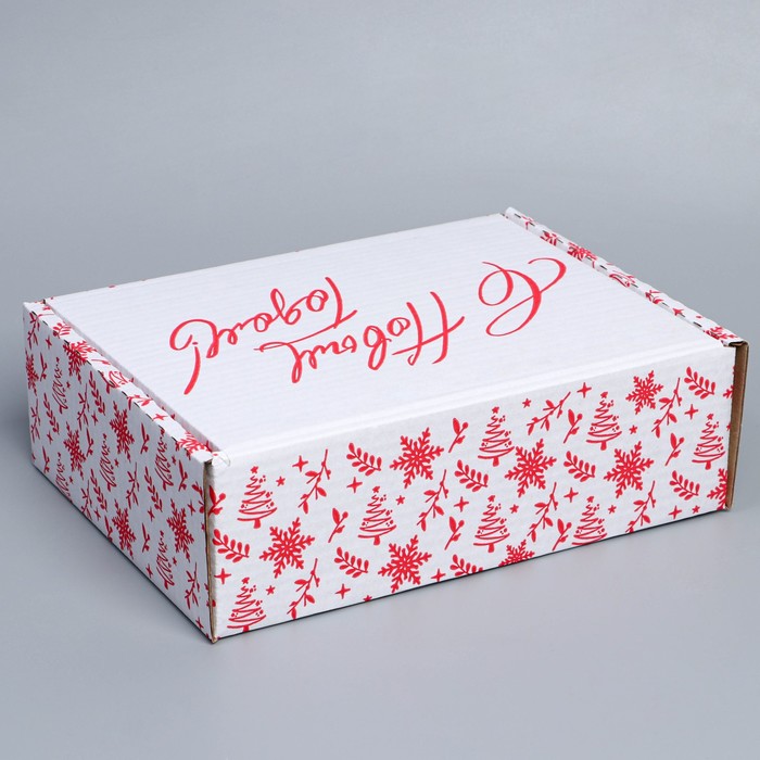 Коробка новогодняя складная «С новым годом», белый, 27 х 21 х 9 см, Новый год — Характеристики