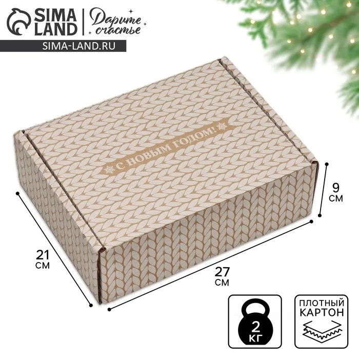 Коробка новогодняя складная «С новым годом!», бурый, 27×21×9 см — Характеристики