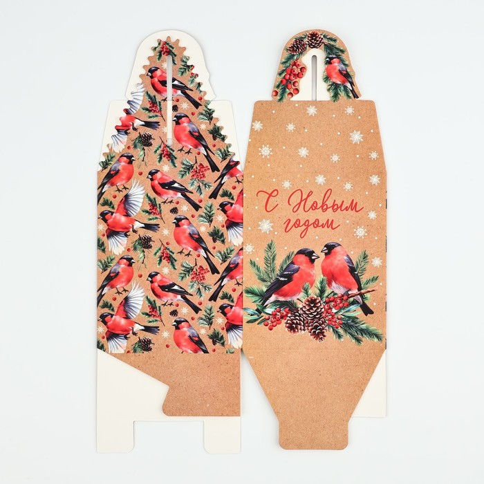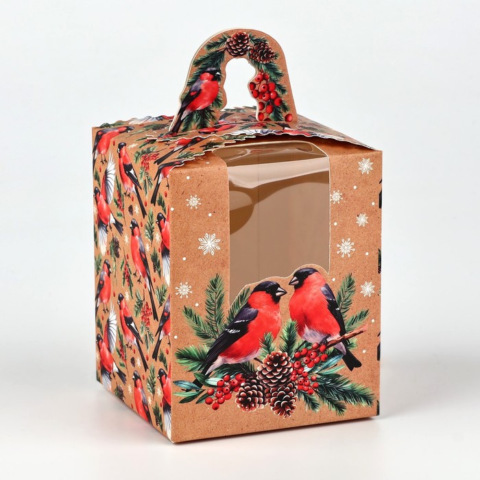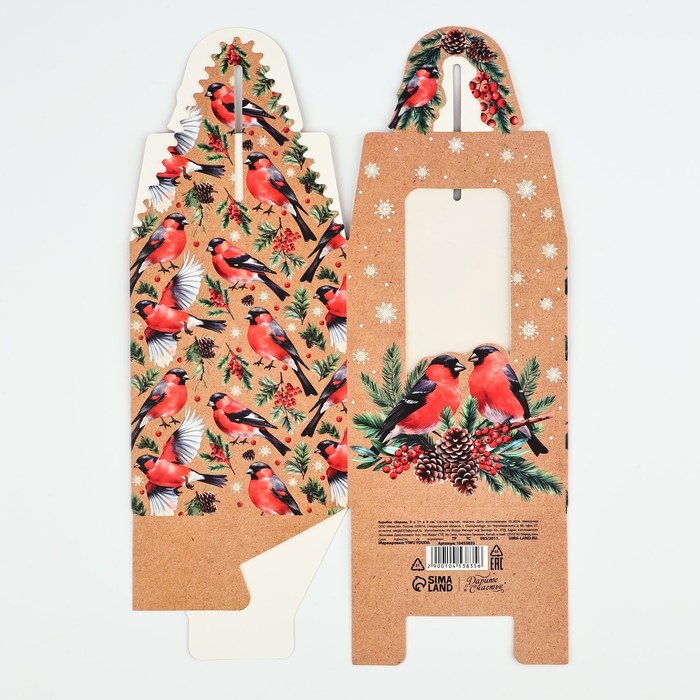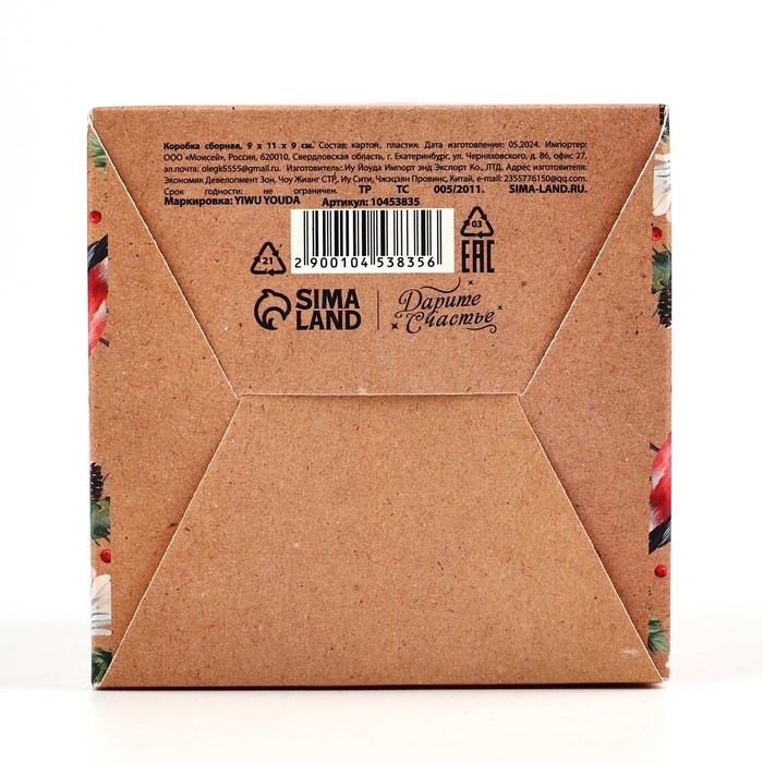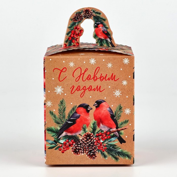 Коробка новогодняя складная «Снегири» 9 х 11 х 9 см — Характеристики