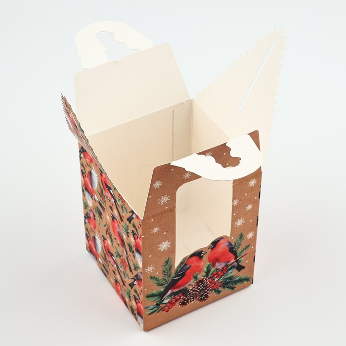 Коробка новогодняя складная «Снегири» 9 х 11 х 9 см
