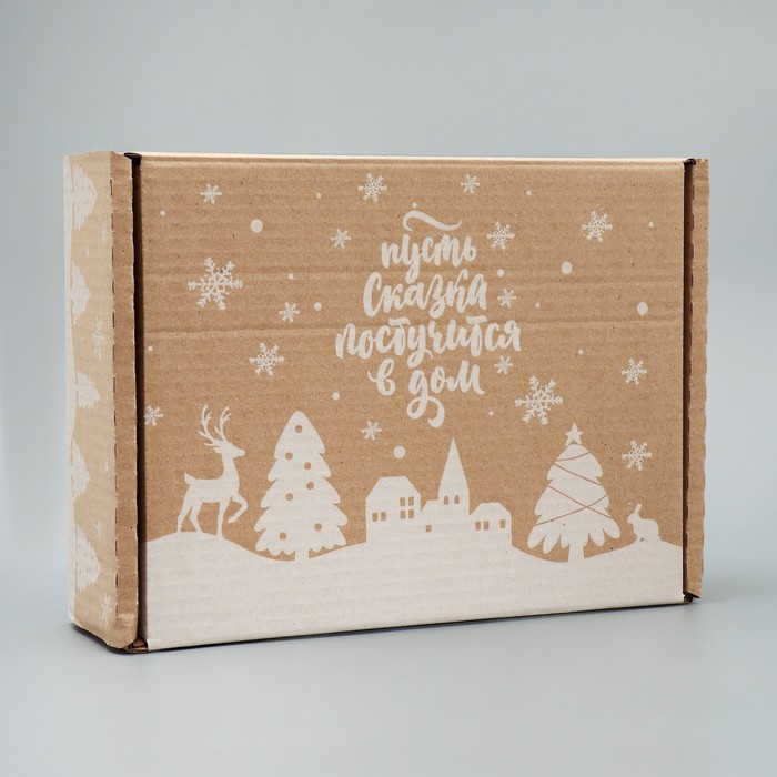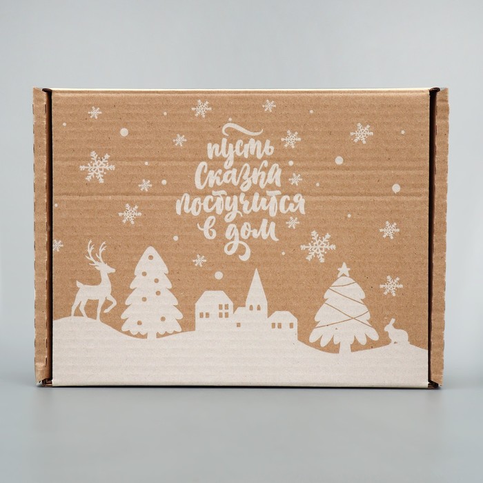 Коробка новогодняя складная «Снежный город», бурый, 27×21×9 см — Характеристики