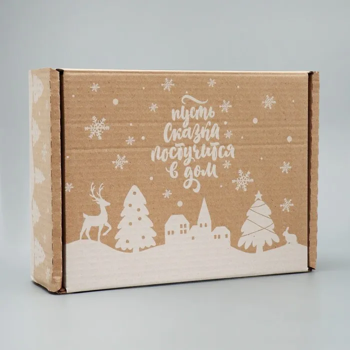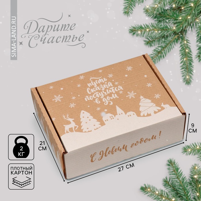 Коробка новогодняя складная «Снежный город», бурый, 27×21×9 см — Характеристики