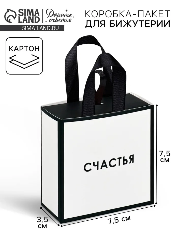 Коробка-пакет под бижутерию «Счастья», 7.5 х 7.5 х 3.5 см — Характеристики