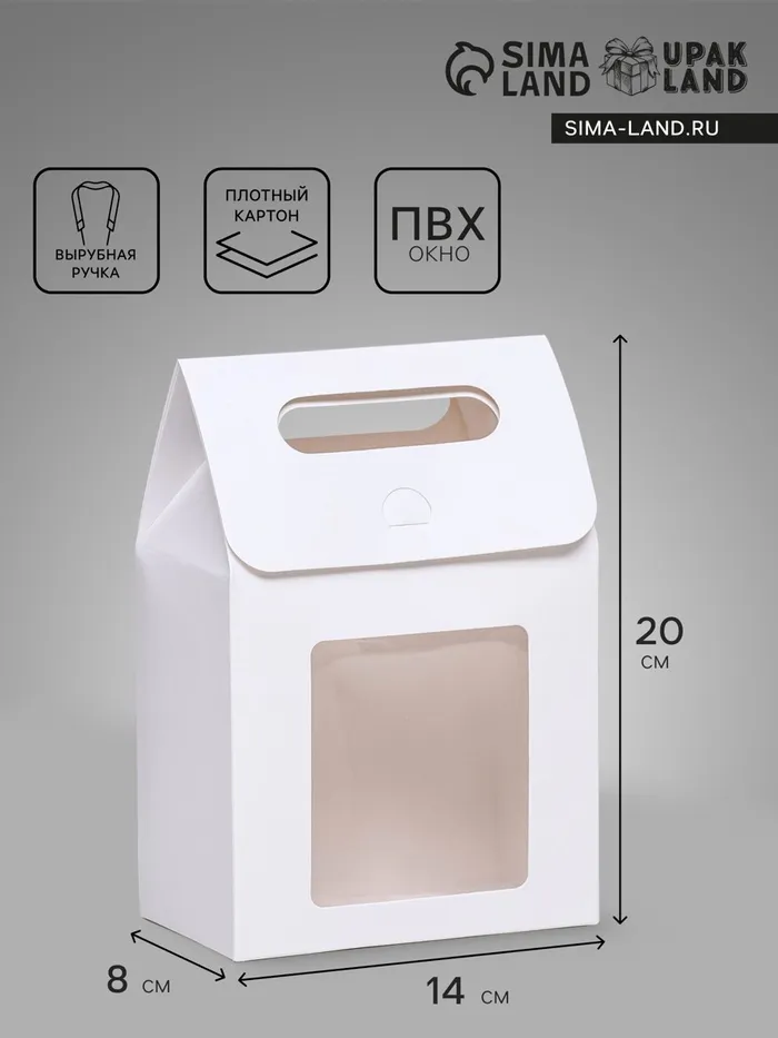 Коробка-пакет с окном, белый, 20×14×8 см — Характеристики