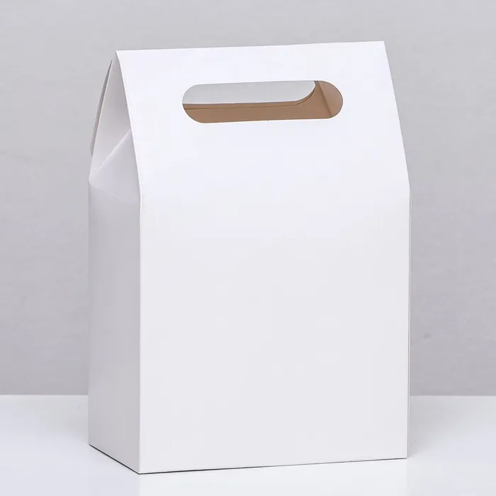 Наличие прочных ручек делает коробку-пакет легкой в переноске и придает упаковке дополнительное удобство.