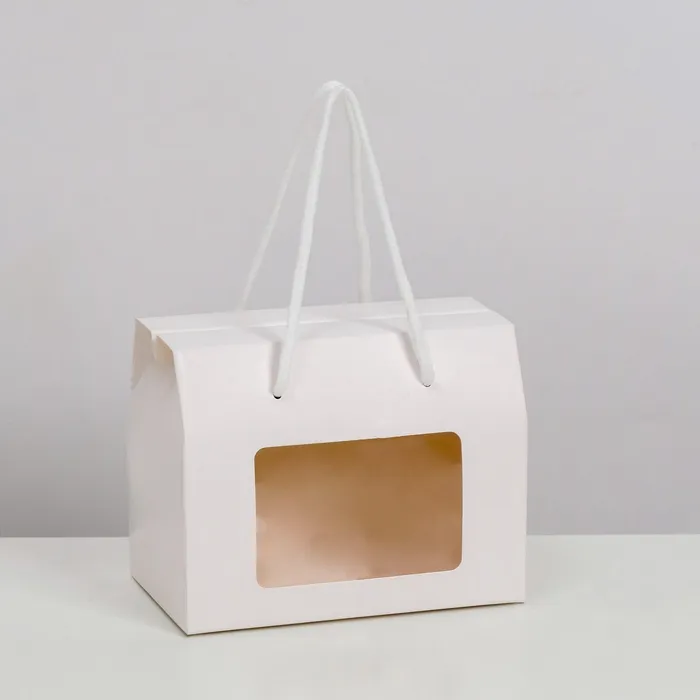 Коробка - пакет, с окном и ручками, белая, 15×11×9 см — Характеристики