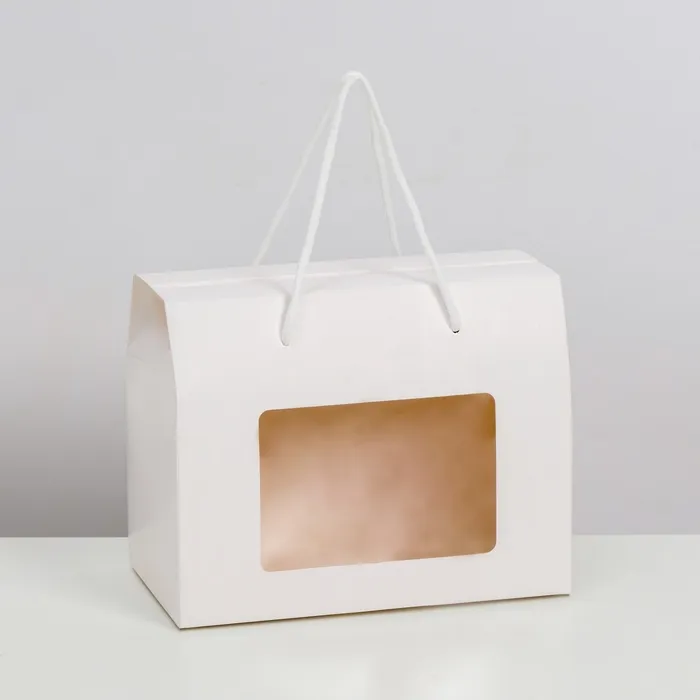 Коробка - пакет, с окном и ручками, белая, 20×15×11 см — Характеристики