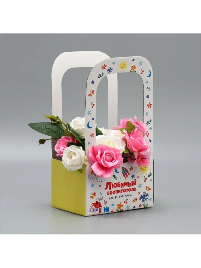 Коробка-переноска для цветов «Любимому воспитателю», 17×12×32 см — Характеристики