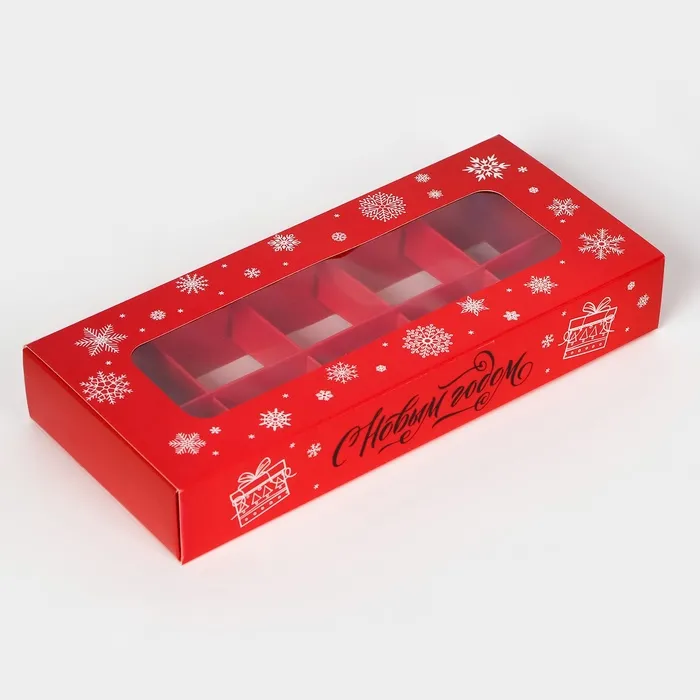 Коробка под 10 конфет "Новогодняя" размером 9,8х22х3,5 см - это прекрасный выбор для упаковки сладостей к празднику. Она выполнена в ярких новогодних цветах, что создает атмосферу праздника и волшебства.