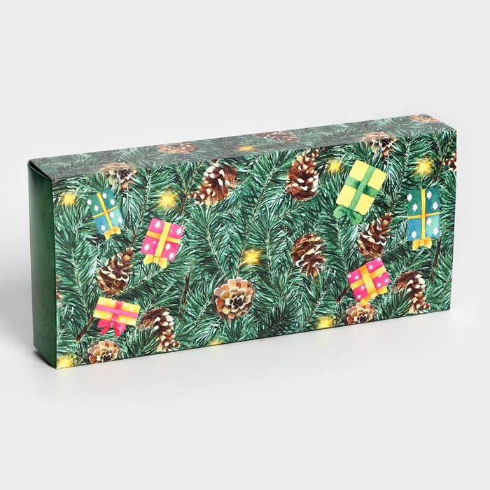 Коробка под 10 конфет "Новогодняя" размером 9,8х22х3,5 см - это прекрасный выбор для упаковки сладостей к празднику. Она выполнена в ярких новогодних цветах, что создает атмосферу праздника и волшебства.