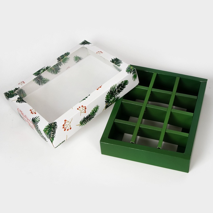 Размеры коробки позволяют упаковать 12 штук конфет, что делает ее удобной для использования в качестве подарка или для домашнего использования. Коробка изготовлена из качественного картона, который обеспечивает надежную защиту содержимого от внешних воздействий.