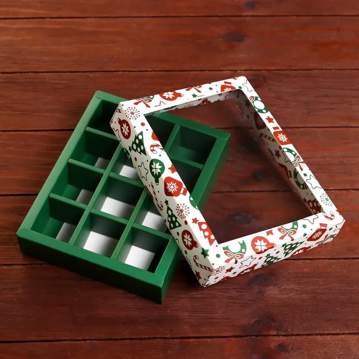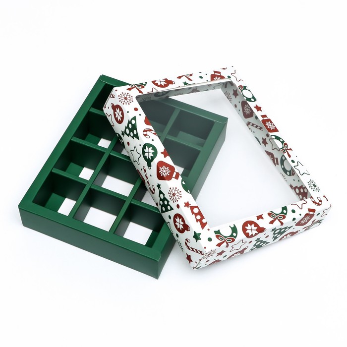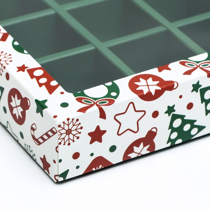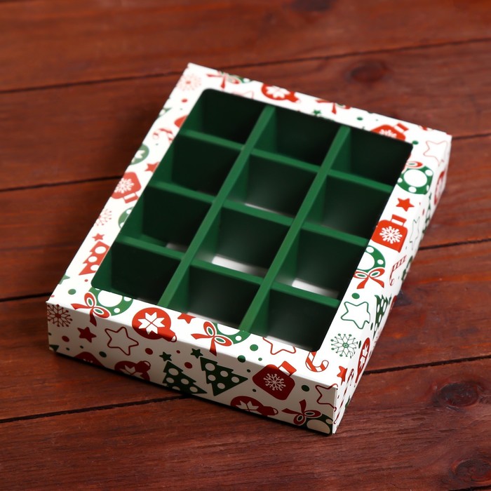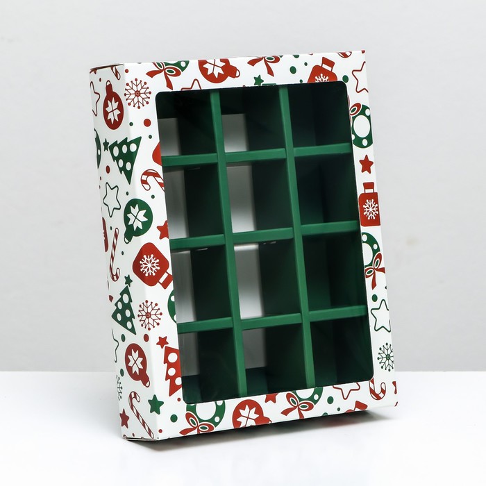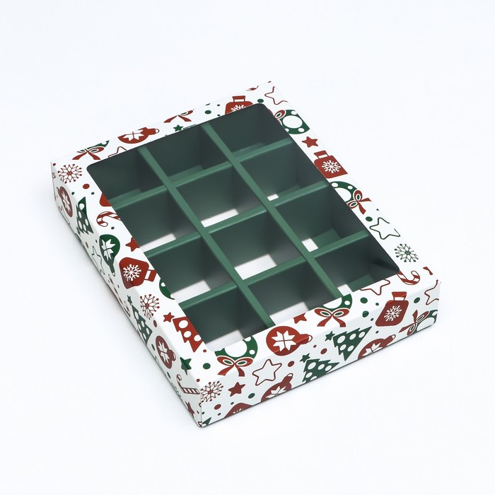 Коробка под 12 конфет «Новогодний паттерн», 19×15×3.6 см — Характеристики