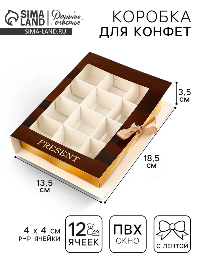 Коробка под 12 конфет с ячейками «Дерево» 18.5 х 13.5 х 3.5 см — Характеристики