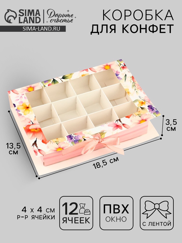 Коробка под 12 конфет с ячейками «С любовью» 18.5 х 13.5 х 3.5 см — Характеристики