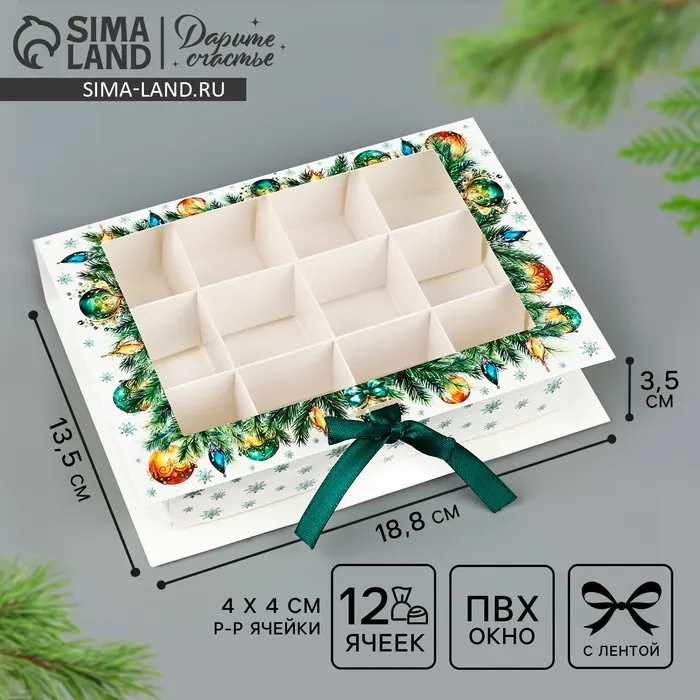 Коробка под 12 конфет с ячейками «С Новым годом!» 18.8 х 13.5 х 3.5 см — Характеристики