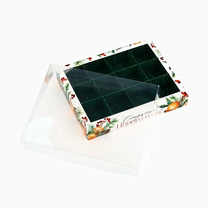 Коробка под 12 конфет с ячейками «Сладкого Нового года!», 14.5 х 18.5 х 3 см — Характеристики