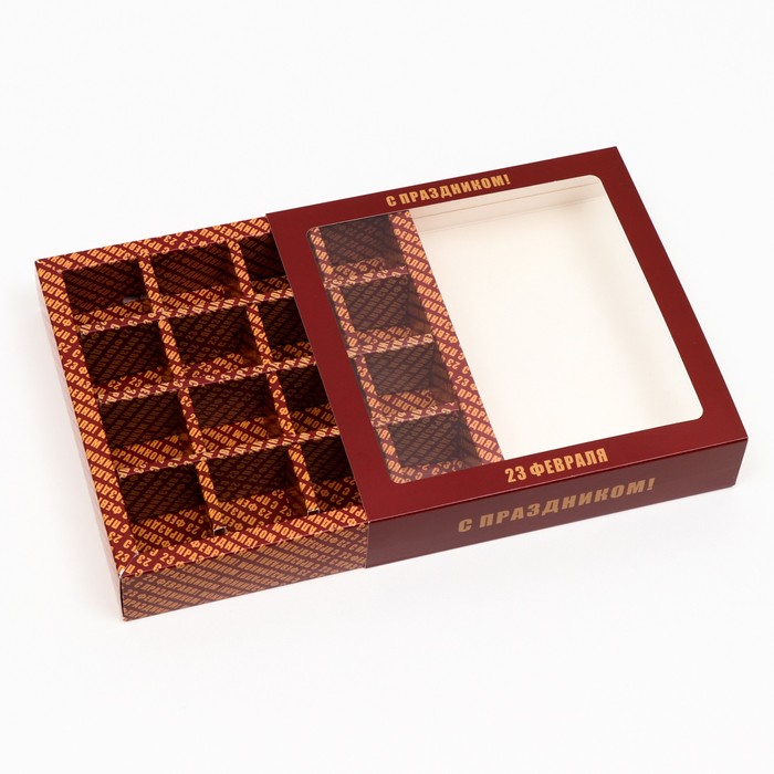 Коробка под 16 конфет «C 23 февраля», 17.7×17.7×3.8 см — Характеристики