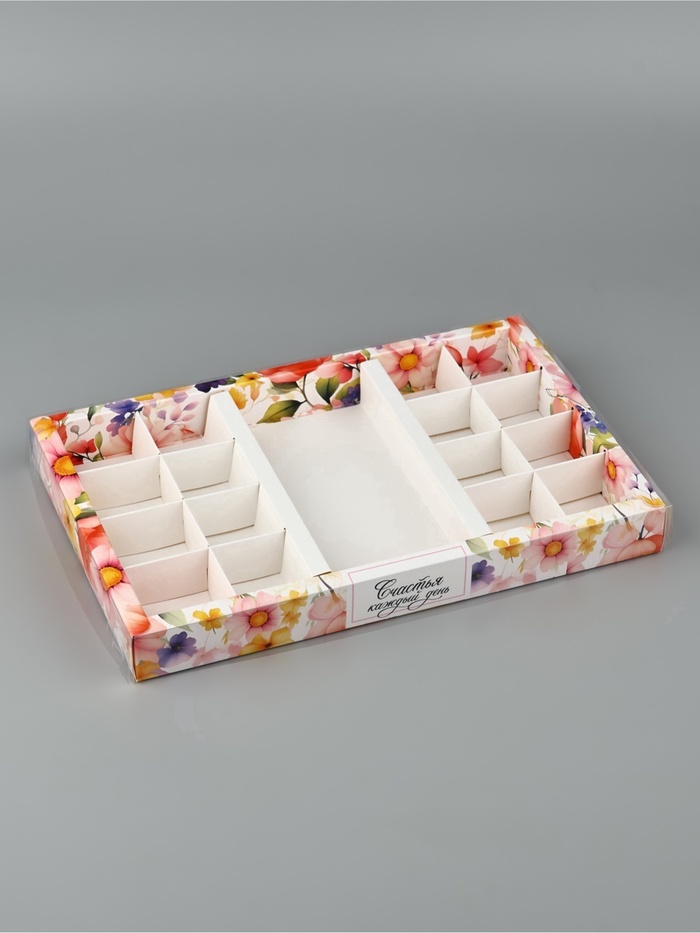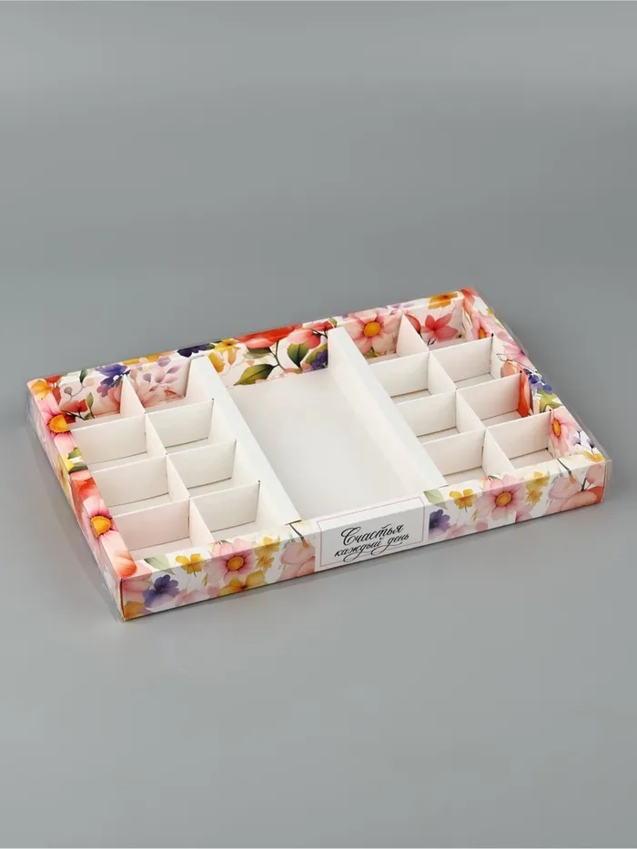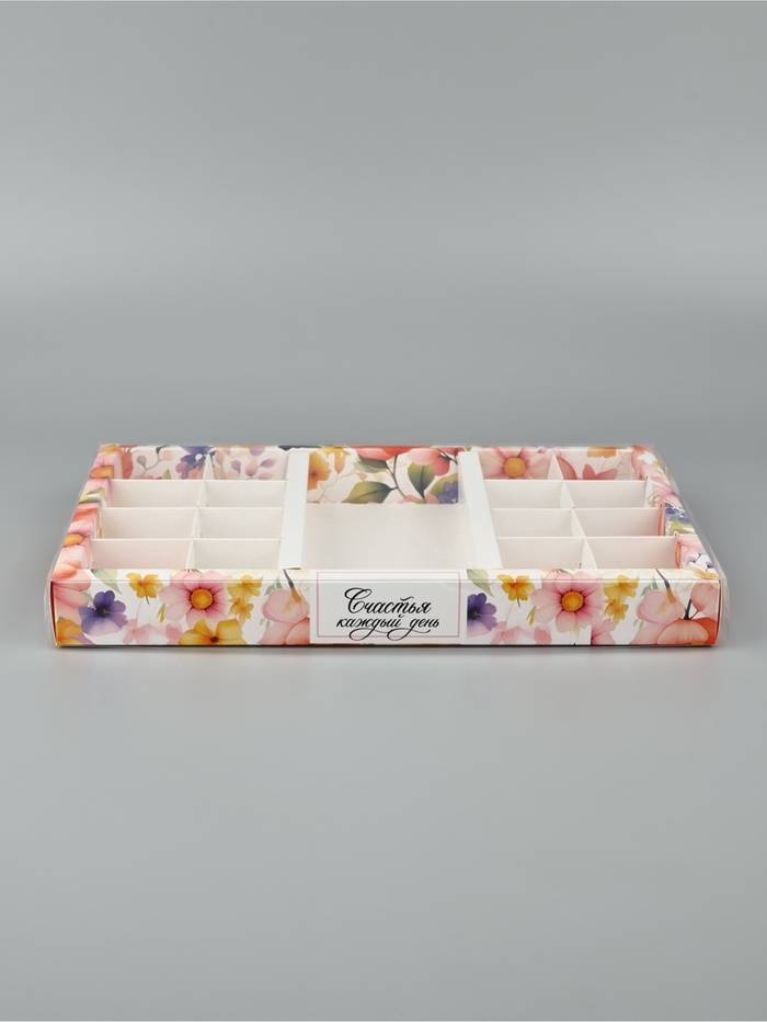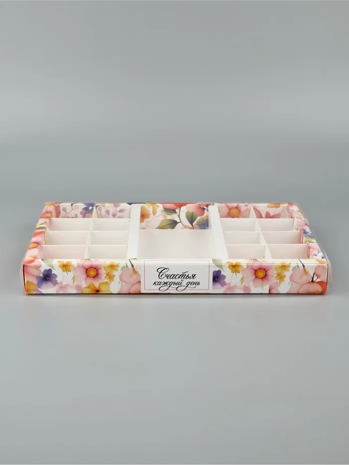 Коробка под 16 конфет и шоколад, кондитерская упаковка «Счастья» 28.5 х 18.5 х 3 см — Характеристики