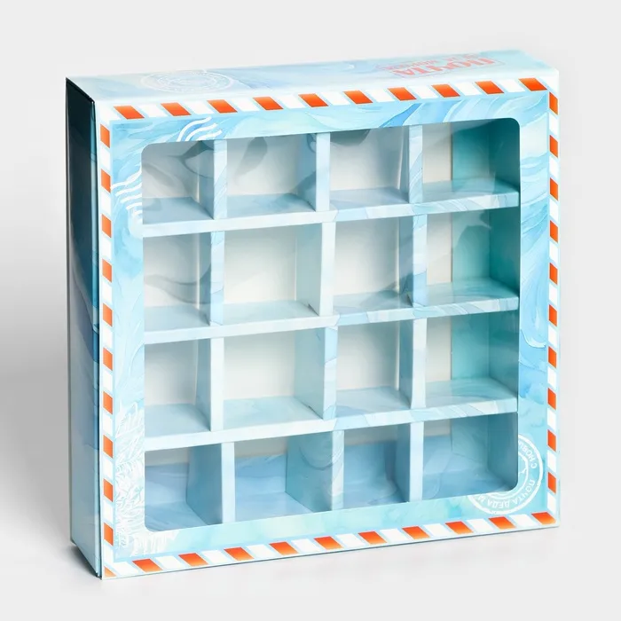 Размеры коробки позволяют упаковать 16 штук конфет, что делает ее удобной для использования в качестве подарка или для домашнего использования. Коробка изготовлена из качественного картона, который обеспечивает надежную защиту содержимого от внешних воздействий.