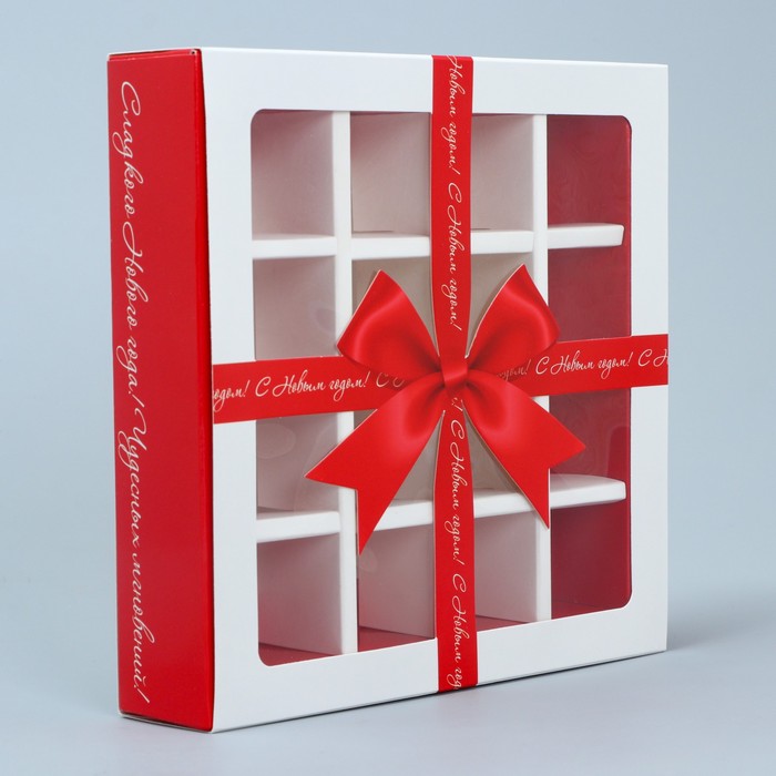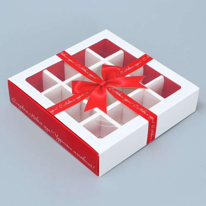 Коробка под 16 конфет с ячейками «Красивый новый год» 17.7 х 17.7 х 3.8 см