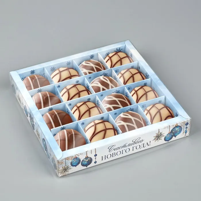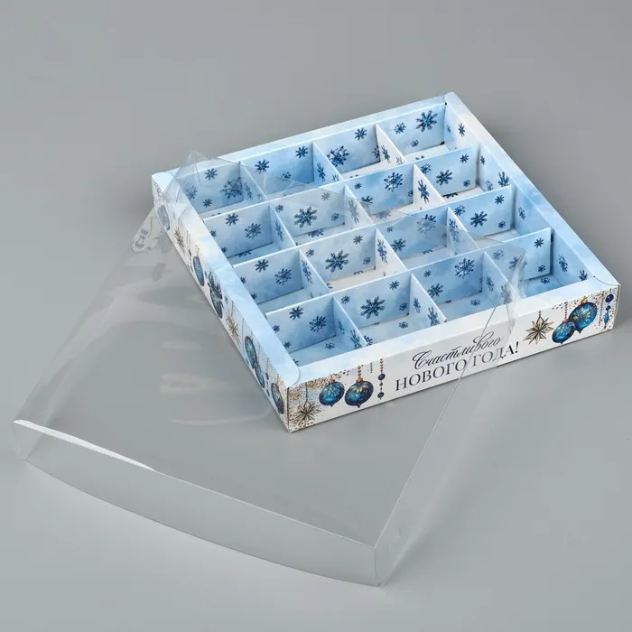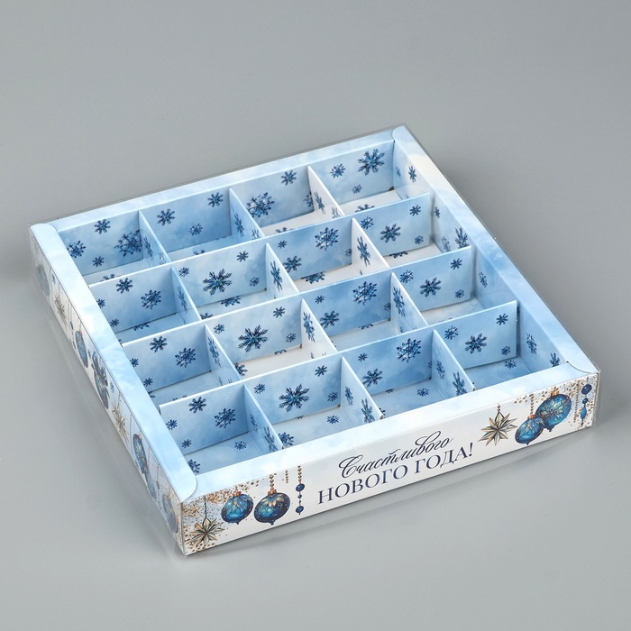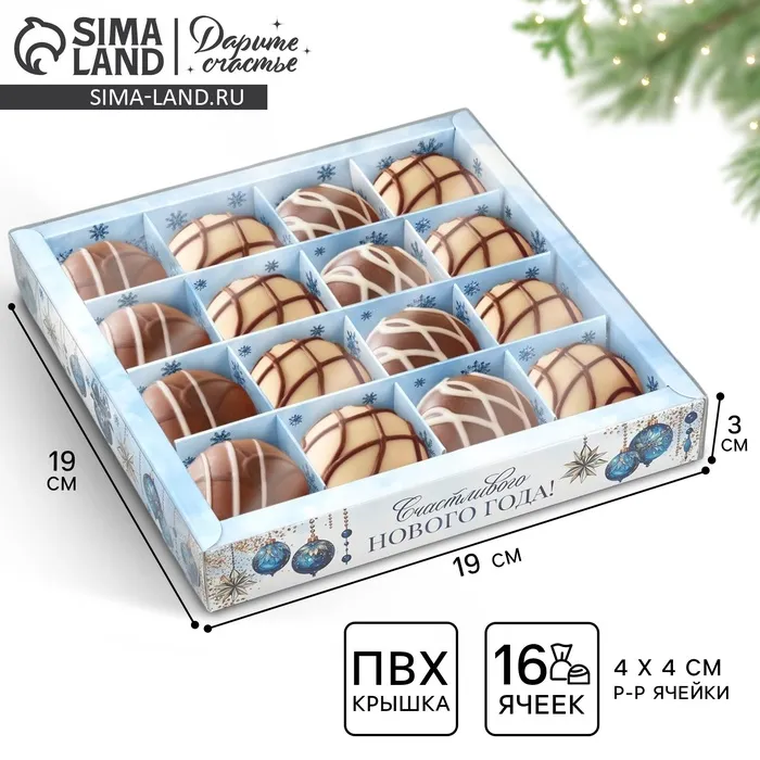Коробка под 16 конфет с ячейками «Счастливого Нового года», 19 х 19 х 3 см — Характеристики